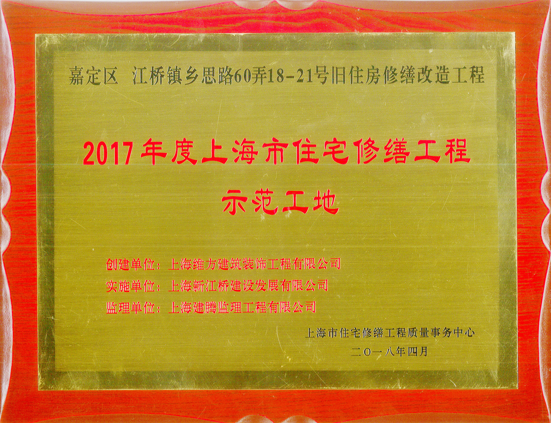 上海維方兩項目喜獲2017年度示范工地稱號